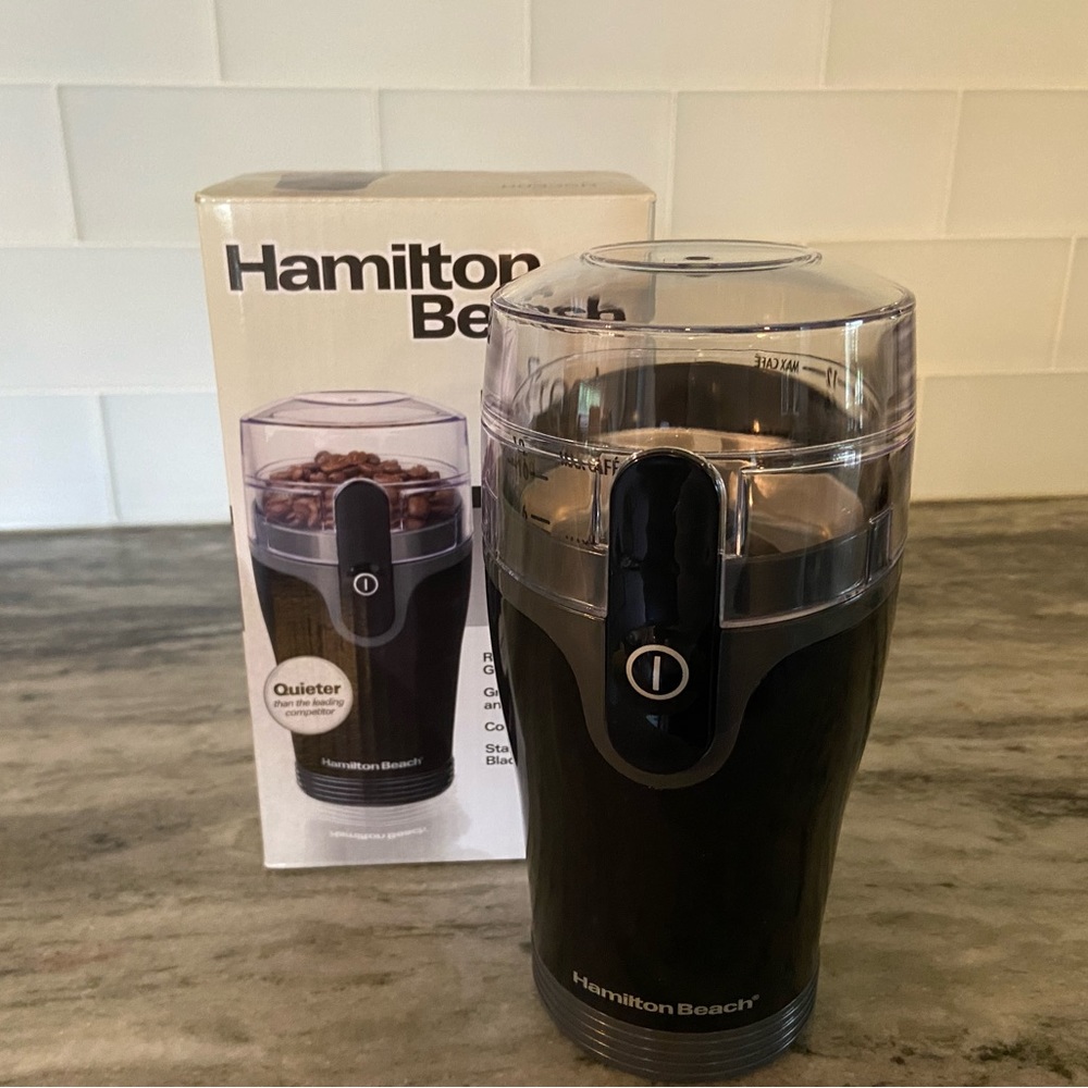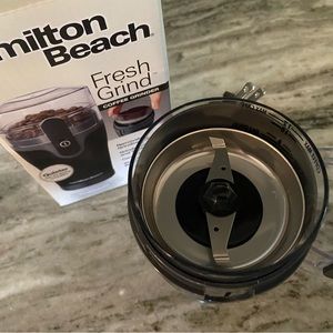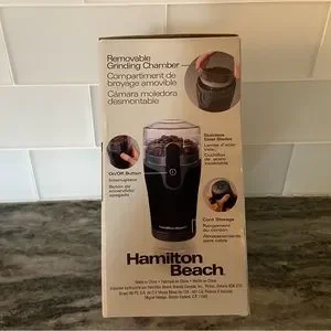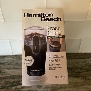 Brand new Fresh Grind Coffee Grinder with removable grinding chamber for grinding coffee and spices. Stainless steel blade, on/off button and cord storage.