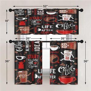 Coffee Kitchen Curtains Black Red Window Curtains Valance and Tier Set 36 Inch