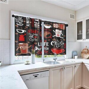 🧿The Role of Kitchen Window Curtains: Coffee doodle kitchen curtains are perfect for privacy and light reduction, it helps to reduce noise and heat. Protect your furniture from color fading, providing privacy in your place.