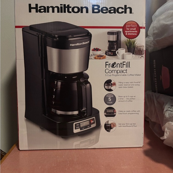 Enhance your kitchen with the sleek and modern Hamilton Beach coffee and tea accessory. Its black design seamlessly integrates into any kitchen decor, offering both style and functionality. Perfect for brewing your favorite beverages with ease.