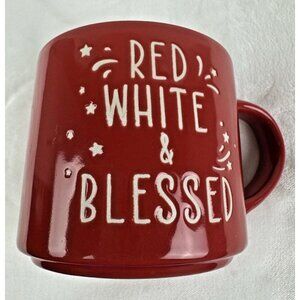 Coffee Mug Ceramic Red White And Blessed 4th Of July Patriotic 16 Oz. Excellent With No Chips Or Cracks