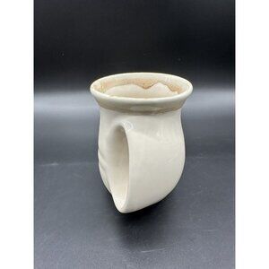 Coffee Mug Cup Right Hand Warmer Drip Glaze Pottery Ergonomic Mug Warming Tan. This mug has no chips, cracks, or crazing. Please see the pictures for the full description.