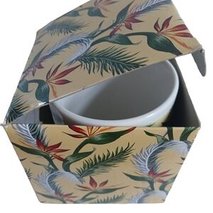 I love the cute box this cup comes in decorated with birds of paradise in a retro vibe.