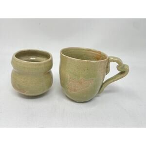 Enjoy these Coffee Mug Pottery Set Hand Thrown Signed 8oz