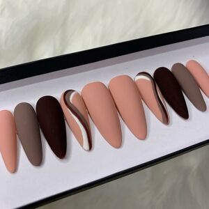 Coffee Swirls Custom Press On Nails | High Quality Nails | Handmade