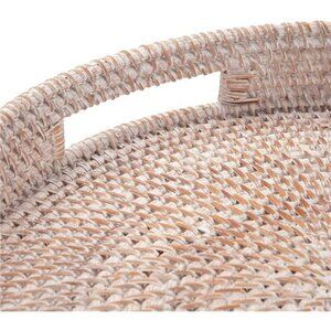 Coffee Table Tray Round Rattan Ottoman Tray Woven Serving Trays with Handles