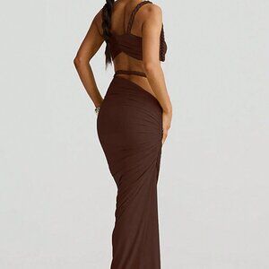 Coffee Women's Sexy Backless Camisole crop top and Hip Hugging maxi Skirt Set