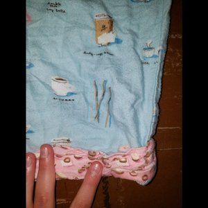 These cute PJ bottoms feature a blue coffee and donut pattern on the outside, pink donuts on the inside, and waist-adjustment strings. Very warm. Perfect condition!