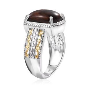 Coffee Obsidian 4ctw Solitaire Ring in 14K YG and Platinum Over Copper W Magnet