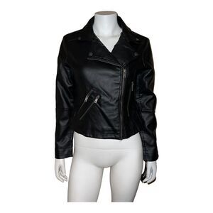 CoffeeShop Juniors Faux Leather Moto Jacket Asymmetrical Black Large NWT