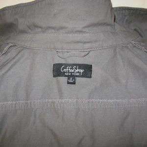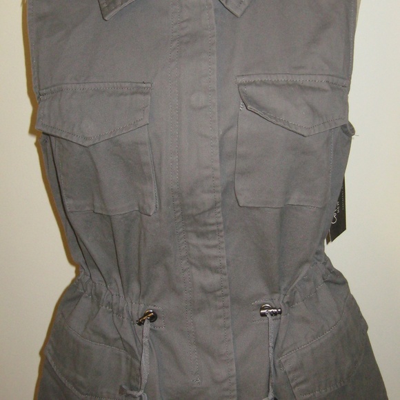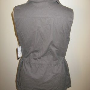 CoffeeShop New York 100% Cotton Smoke Gray Snap Zip Front Vest. Drawstring cinch waist with front flap pockets