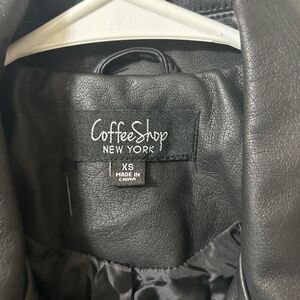 CoffeeShop Black Faux Leather Moto Jacket,Zipper Closure,Approx measurement Pit to Pit 17.5”,Length 19”.NWT