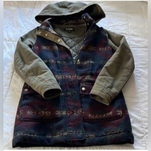 🚨 Coffeeshop Mixed Media Aztec Tribal Patterned Print Hooded Coat. Medium.