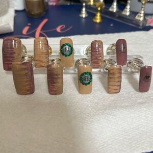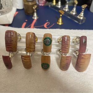 For the coffee lovers! This set boasts of green, brown and tan colors with rhinestones. See all photos for details. This set includes: