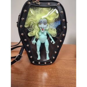 Coffin Shaped Gothic Backpack/crossbody Clear Window Handbag with Inserts for Pins Display (Pins Not Included) but doll is!