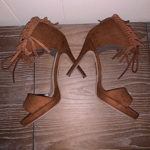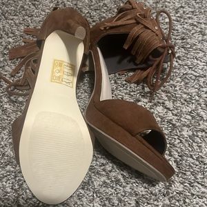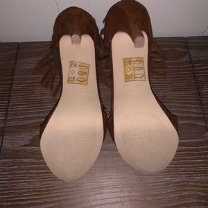 Cognac 4” fringed heels.