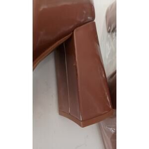 J-Lo Brown Block chunk Heel bootie shiny, women's size 10. In good used condition. has a few touched up scuffs. Signs of minor wear