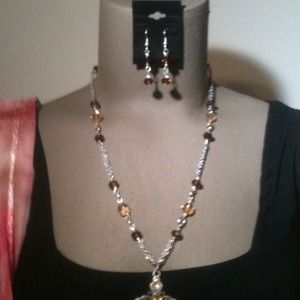 Beautiful handmade cognac crystal necklace set. Reflects light beautifully! Cognac earrings included .