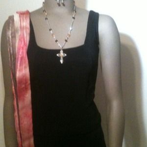Cognac crystal cross necklace silver-tone set