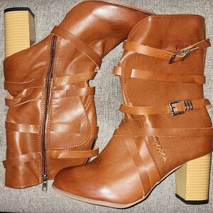 NWOT CHUNKY HEEL BOOTS INNER ZIPPER AND BUCKLE ACCENT DETAILS SIZE 42 / 8-8.5