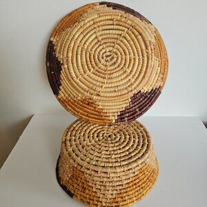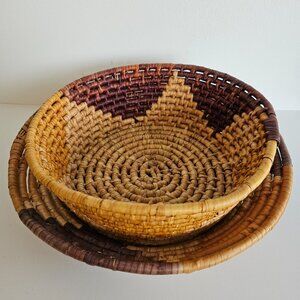 Coil Wrap Rafia Woven baskets Southwest style gallery wall hanging 3D set of 2