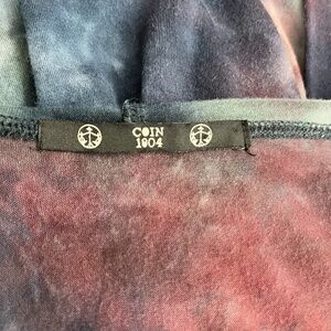 Coin 1804 Hooded Grunge Tie Dye Duster Open Cardigan M Fairy Olive Green Navy
