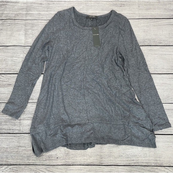 Coin 1804 Sweater Womens Small NWT Heather Gray with layered look shirt tail R7
