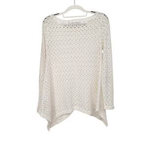 Coin 1804 White Crochet Long Sleeve Shark Bite Hem Boho Overlay Top Women's M