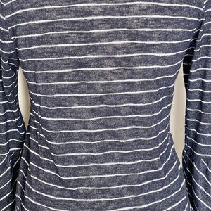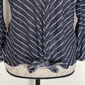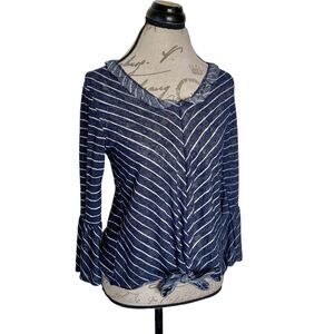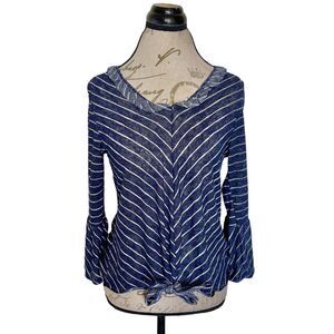 Coin 1804 Womens Blouse Sz Medium Striped Bell Sleeve Tie Front V Neck Ruffle