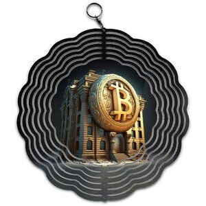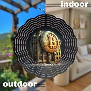 Crafted from high-quality materials, this Coin Bank Digital Currency Logo Design Wind Spinner features an aluminum material and powder-coated for rust resistance and durability that can last for years. This has a glossy and reflective finish with high quality image print on the spinner blades which creates a stunning visual effect when the wind blows, catching the sunlight and creating a beautiful play of light and shadow.