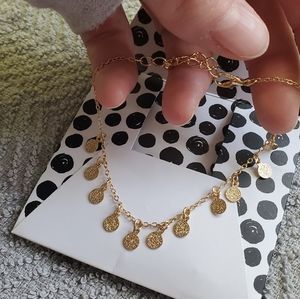 Delicate gold plated coin bracelet, 7 in chain, 2 in extender, brand new, never worn