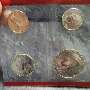 1990 United States Mint Uncirculated Coin Set from the Denver Mint. A collection of coins in a clear holder. Features various silver and gold-toned coins.