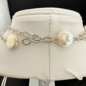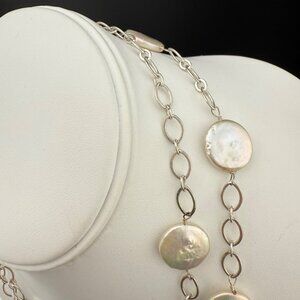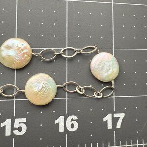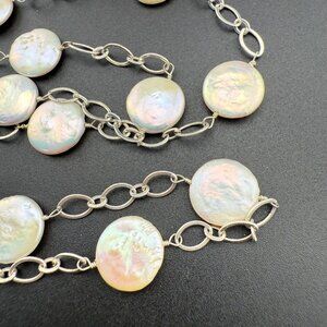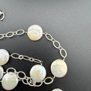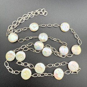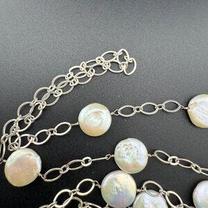 Coin Pearl Necklace Single Strand With Silver-Tone Chain Elegant