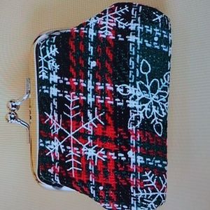 Coin Purse Plaid Snowflake Kiss Lock Tweed