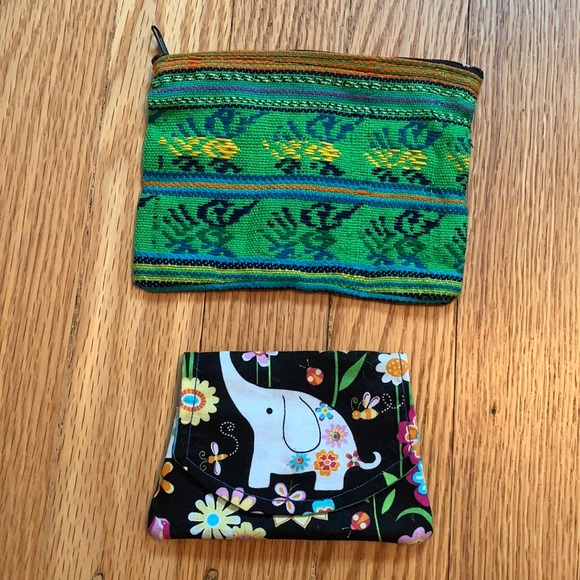 One green zipper pouch. NWT. One mini elephant wallet. Handmade NWOT. Please see pictures and ask any questions 🙂