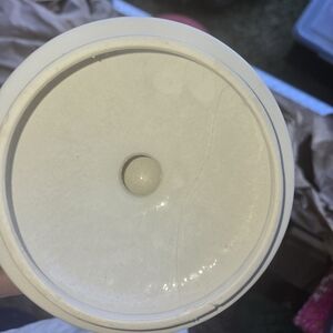 Canister set large canister has a chip shown in pictures and hard to see Crack also matching salt & pepper shakers and napkin holder and pitcher all matching set.
