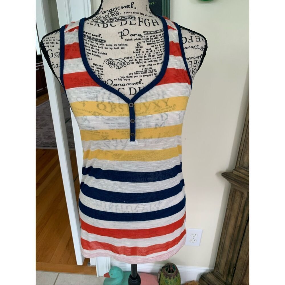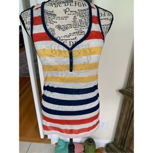 ColStory Razor Back Striped Tank NWOT with beautiful bright colors, v neck and button detail. Has a retro look. Size medium