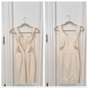 Tight cream colored dress with see through mesh detail on the sides