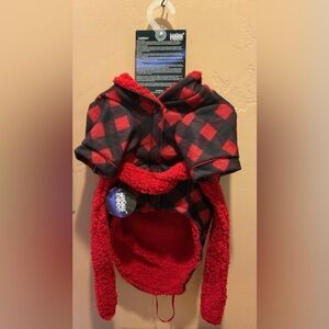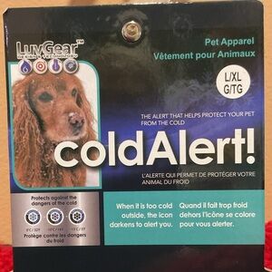 Brand new with tags LuvGear Cold Alert Red/Black Plaid Flannel Jacket for dogs. Fleece lined. The jacket that alerts you when its too cold outside and helps protect your pets. There is a snow flake icon that appears when its cold out and begins to darken as the temperature jobs ensuring that you always know when its too cold for your pooch to be outside. Size large/x-large. Fleece lined. Velcro closure with additional fleece strap to keep the jacket on securely.