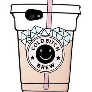 This protective silicone iPhone case is handmade, featuring Cold B*tch Brew coffee.