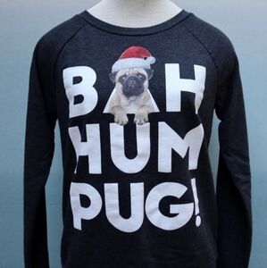 Cold Crush "Bah Hum Pug" Christmas Holiday Swearshirt Women's Small S Grey EUC