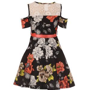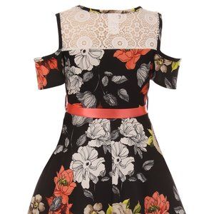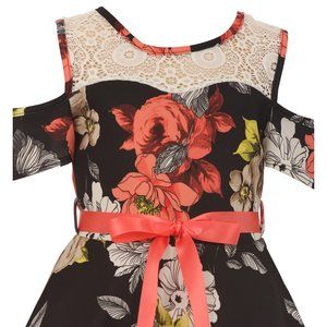 Cold Shoulder Short Sleeve Floral Print Flower Girl Dress.