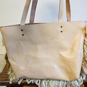 "Cold Picnic 90s Funky Leather and Acrylic Wool Tote Bag. Multi-coloured wool ends embellish front of this tote for that funky look. Leather. Unlined. Double top straps. Pre-owned. Note markings on back of back as shown.