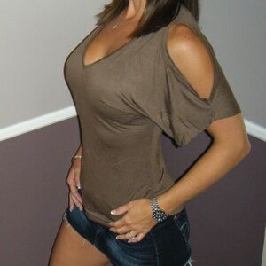 Very sexy cutout cold shoulder top. Figure forgiving floaty fit with ruching at hips. Sheer knit and v-neck for a peek of cleavage. Vertical seam in front and back. Great dressy or casual.