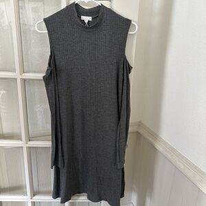 Cold Shoulder Dress NWT Gray Women's Medium Ribbed Knee Length