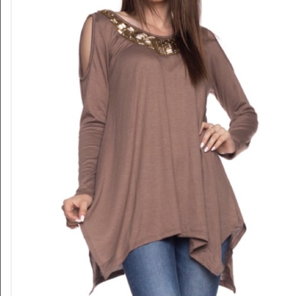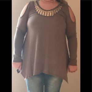 Taupe .. Knit Cold Shoulder Top