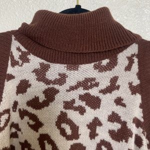 Cold Shoulder Leopard Boho Turtle Neck Mock Off Boho Hipster Winter Hip Blouse