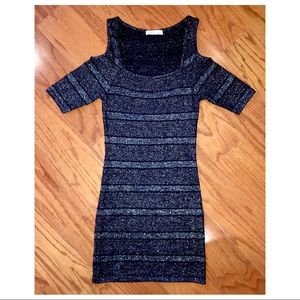The perfect New Year's Eve dress! Black and silver stretch mini dress. Very comfortable!! Worn twice.