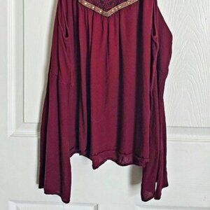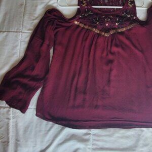 Cold Shoulder Peasant Blouse Red Purple Embroidered
