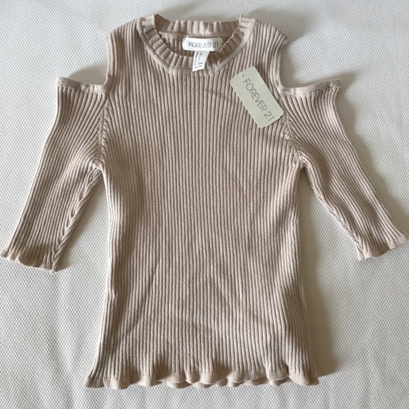 Beige/oatmeal-colored tight ribbed top with cold-shoulder cut-out. Brand new with tags!